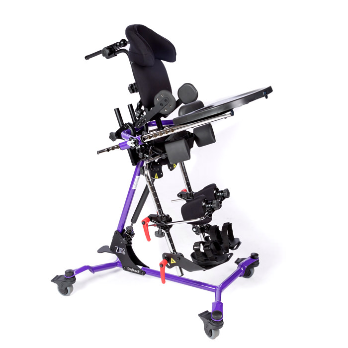 EasyStand zing multi-position stander is a pediatric stander which allows a child to seamlessly go from a full supine to prone position without having to change, turn or flip pads and foot plates or transfer a child in and out of the stander. In one fluid motion, the child can be positioned between supine, upright and prone positions. Zing MPS has a terrific user range, fitting most children from infancy to 44″ and up to 70 lbs. EasyStand zing MPS features multi-adjustable tray which is angle adjustable and also swings away both to the left and right while still remaining attached to the frame.