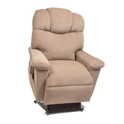 Golden Technologies compass GP620SS heavy duty power wheelchair has a 450 lb. weight capacity yet a 20″ turning radius. Compass HD GP620SS wheelchair features front and rear height adjustable seat posts, padded flip up armrests, the easy to use sliding seat bracket and a fully adjustable footplate. The compass HD comes standard with a van back pan seat.