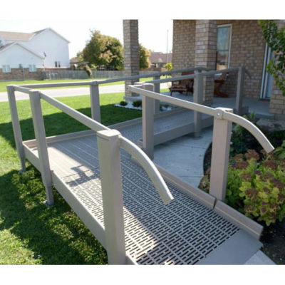 The powder-coated Triumph steel ramp is an economical option with open mesh design. Modular steel mesh ramps are an aesthetically pleasing, yet affordable ramp solution. The Tuxedo Black powder-coated finish complements all exteriors and provides more durability than painted steel ramps. The non-slip textured surface keeps this ADA-Compliant ramp safe for all users, as rain and snow pass through the mesh construction. The modular ramp sections come in a variety of in-stock lengths that are ready to install within days, not weeks.