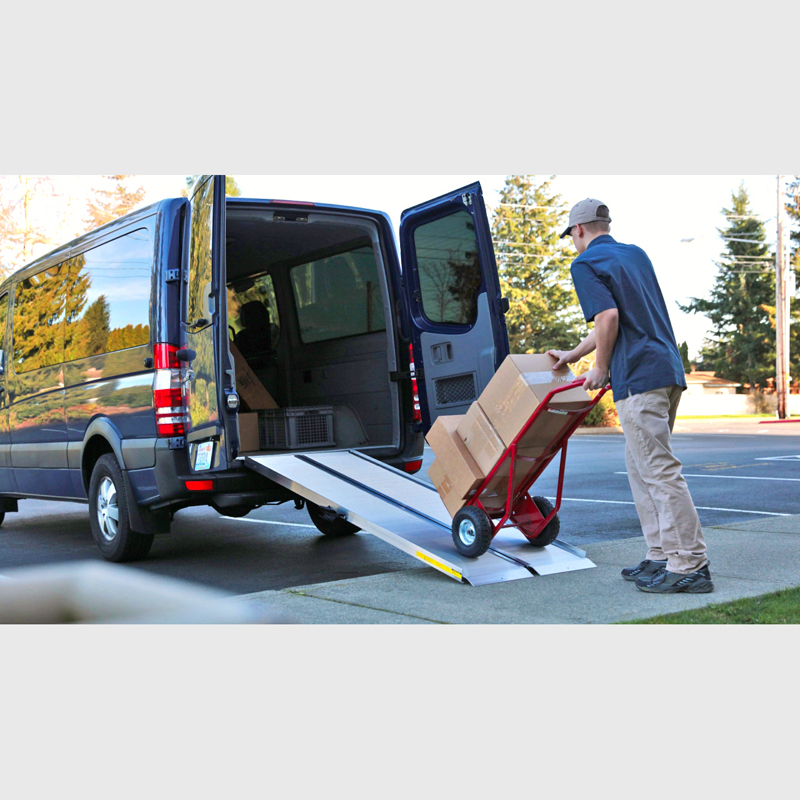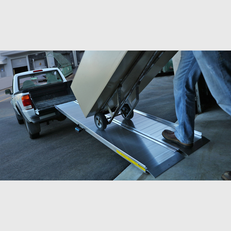 Extruded, slip-resistant surface for superior traction. Built-in curbs prevent cargo from slipping off the edge. - Ramp Hinge and Load Distribution: