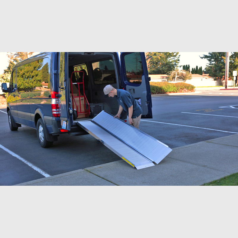 The hinge runs the full length of the ramp. This design helps ensure the product is strong and safe by dispersing the load throughout the entire ramp, rather than on two hinge points. The hinge design also helps protect against pinching and makes setup quick. - Storage: